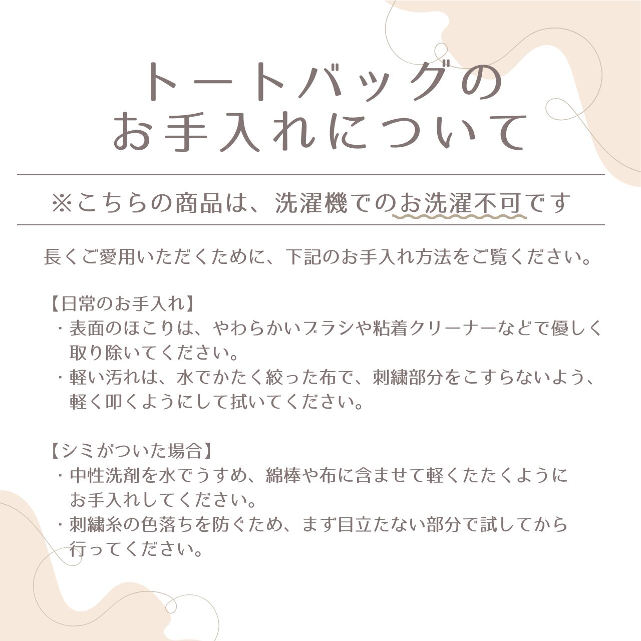 ・刺繍部分はあて布をするなど、直接アイロンが当たらないよう注意ください。