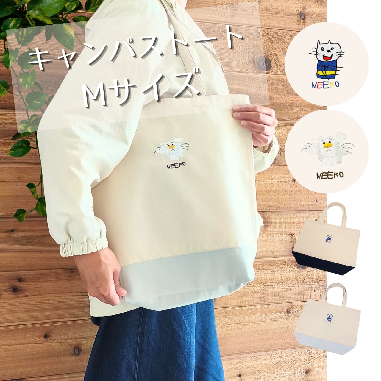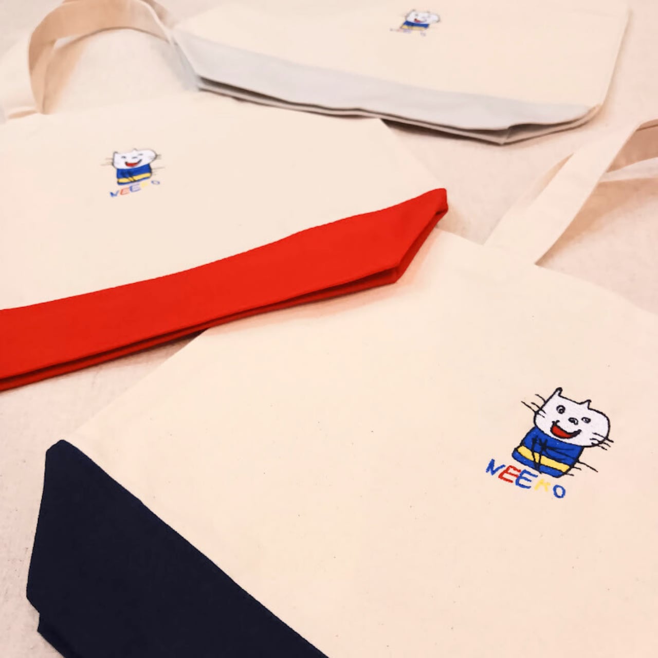 ネーコの刺繡屋看板キャラクター「ネーコ」と「こまったうさぎ」のトートバッグ!